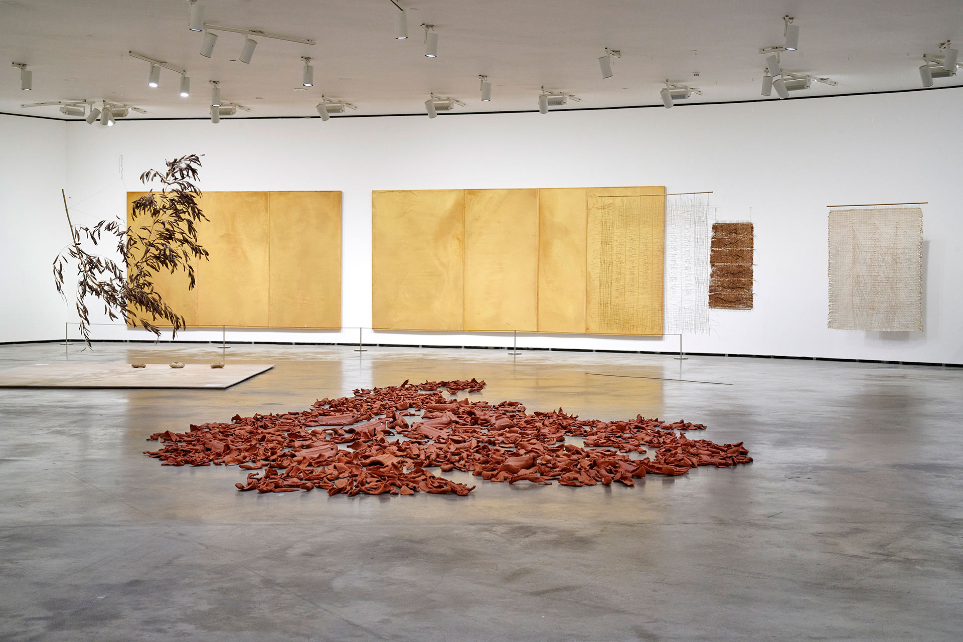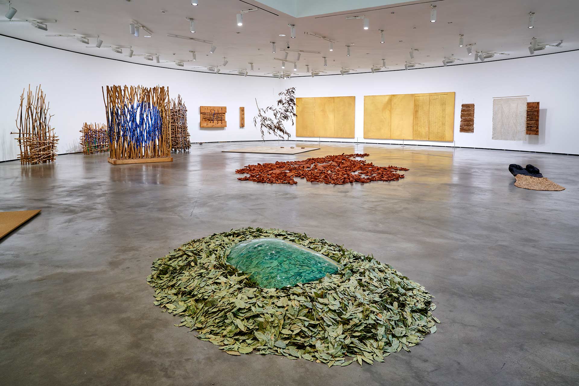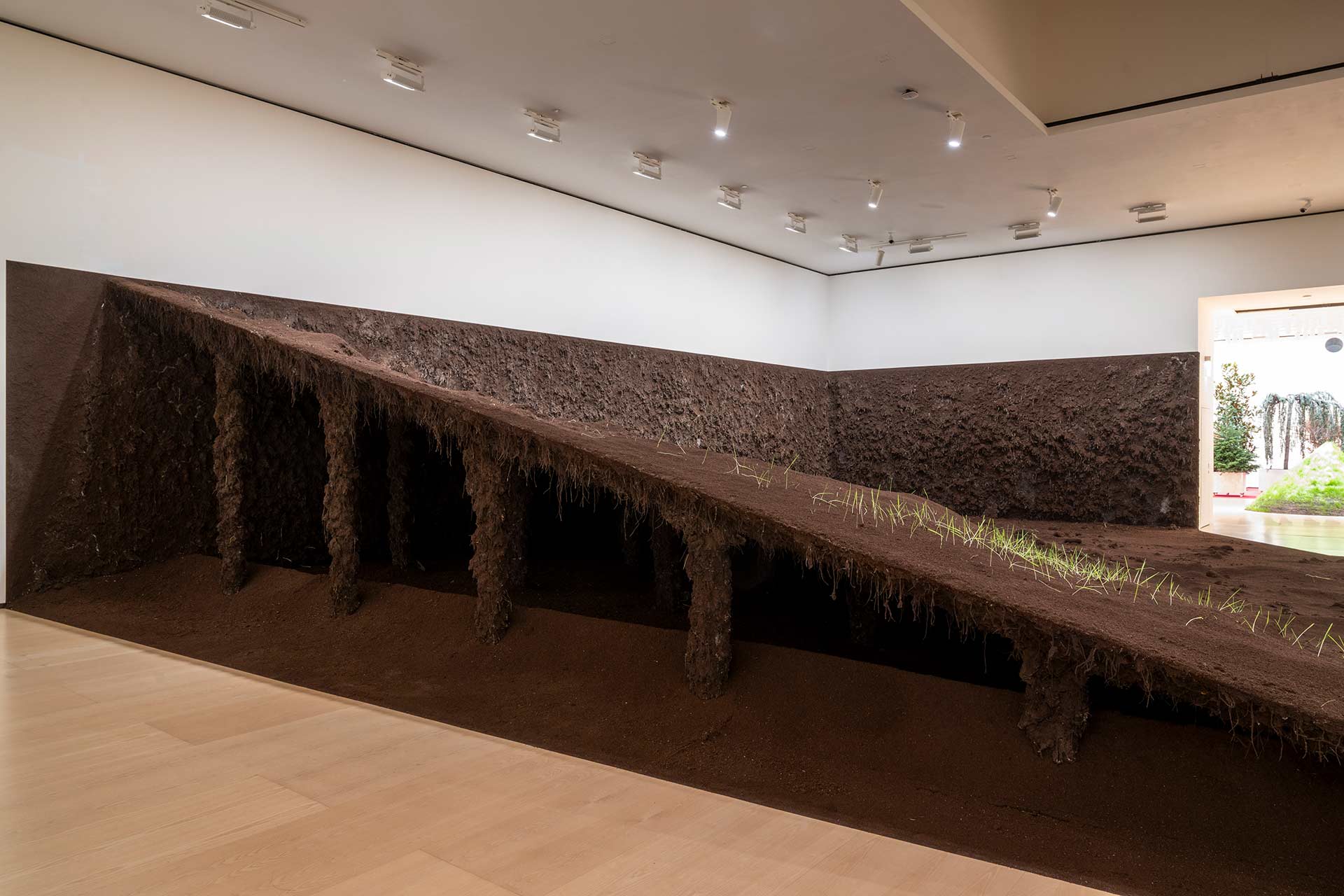 Des artistes de plusieurs générations du passé récent et de cultures radicalement diverses se sont demandé comment travailler avec la terre lorsque celle-ci nécessite le plus de soins et de réparations ; comment apprécier et lui rendre ses dons ; comment apprendre de ce qu’elle nous offre, alors qu’elle semble dépouillée de sa richesse originale. Le potentiel constructif du sol et des substances qui le composent nous emmène bien au-delà des formulations classiques de la sculpture, de l’architecture, du design ou de l’aménagement paysager. Le sol, au sens concret, proche et dynamique du terme, est le théâtre d'incessants échanges et communications, d'une solidarité essentielle entre les espèces, constamment transcendées pour le bien de l’ensemble. Outre les œuvres d'art, les projets, les documents et les objets du savoir ancestral réunis, Les Arts de la Terre fait appel à une muséographie qui utilise de nouveaux matériaux locaux, compostables ou recyclés, et une approche innovante de la logistique des expositions, qui réaffirme et développe l'engagement du Musée Guggenheim Bilbao en faveur du développement durable.